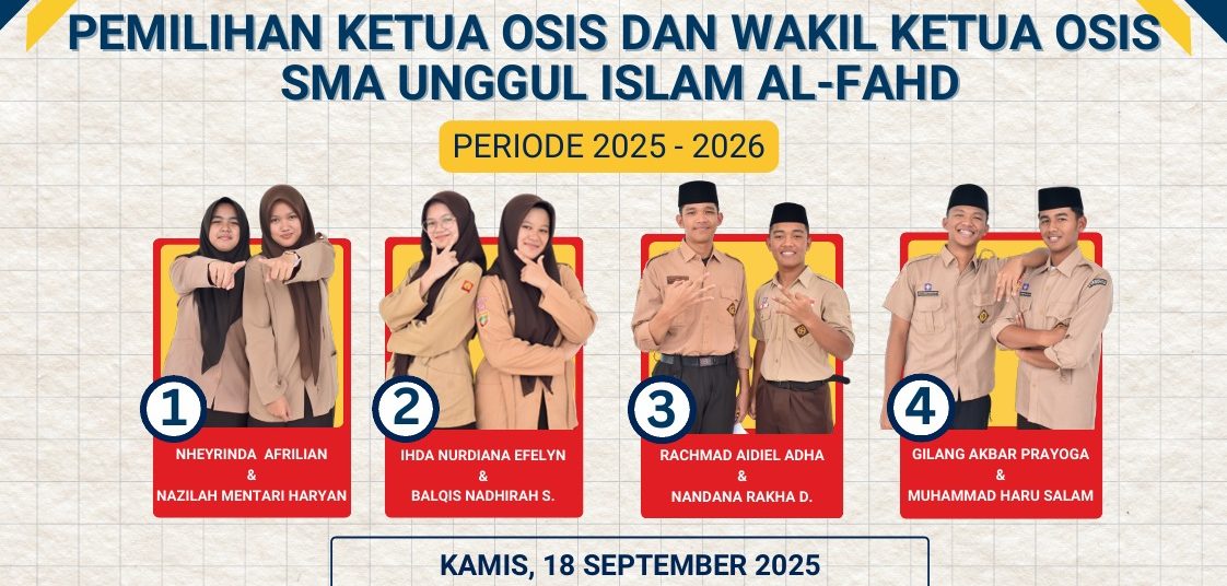 PELANTIKAN KETUA, WAKIL KETUA OSIS DAN ANGGOTA EKSTRAKURIKULER SMA UNGGUL ISLAM AL-FAHD PERIODE 2025-2026 Telah dilaksanakan pelantikan Ketua, Wakil Ketua